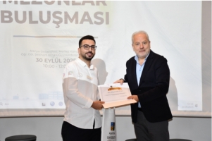 Etkinliğin sonunda konuşmalarını gerçekleştiren mezunlarımıza teşekkür belgeleri ve hediyeleri Prof. Dr. Turan Sağer hocamız tarafından takdim edildi. Ardından Gastronomi ve Mutfak Sanatları mutfaklarında Cansu ve Gülçin hocalarımız tarafından hazırlanan muffin ve kurabiyeler öğrenci ve mezunlarımıza ikram edildi.
